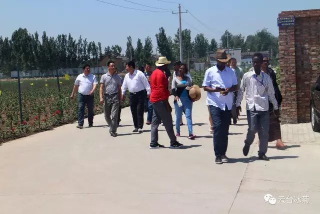 2017年5月16日,風和日麗,青云流蘇,來自吉布提的考察團一行來到【云臺冰菊】基地進行參觀、交流,本公司董事長宋曉龍熱情接待了來訪考察團,親自帶領國外友人參觀云臺冰菊基地,并就云臺冰菊的歷史淵源、發展歷程、種植過程及特色亮點作了生動而詳細的介紹。